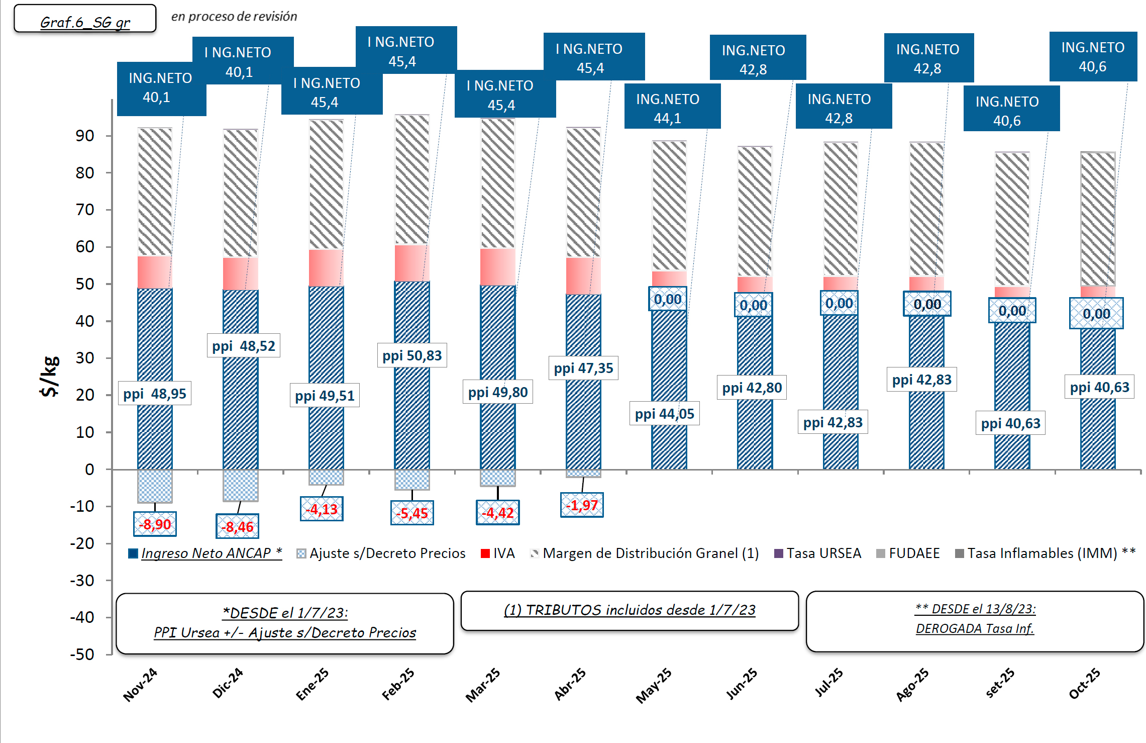 Hasta junio 2021, las tarifas eran propuestas por ANCAP y fijadas por Poder Ejecutivo. A la fecha se mantiene mismo régimen para GLP.